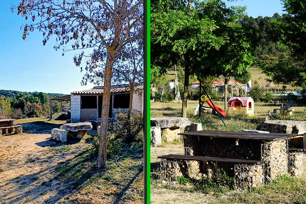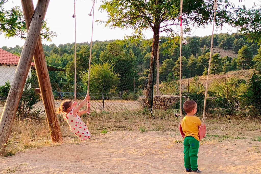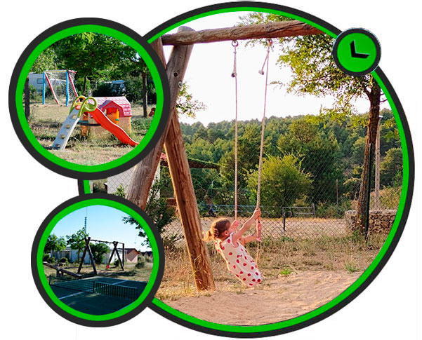 El camping cuenta con una zona vallada pensada para el disfrute de los más pequeños. Se trata de un parque rústico con bancos y fuente columpios para los más pequeños, mesa de ping pong, valla de voley y un pequeño campo de fútbol todo ello fabricado en su mayoría con los recursos que encontramos en el monte.